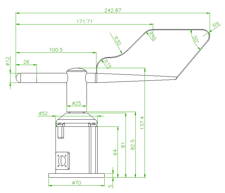 采用法蘭安裝方法,螺紋法蘭連接使風(fēng)向傳感器下部管件牢牢固定在法蘭盤上,底盤Φ70mm,在Φ61mm的圓周上開四個(gè)均Φ5mm的安裝孔,使用螺栓將其緊緊固定在支架上,使整套儀器保持在最佳水平度,確保風(fēng)向數(shù)據(jù)的準(zhǔn)確性,法蘭連接使用方便,能夠承受較大的壓力。
